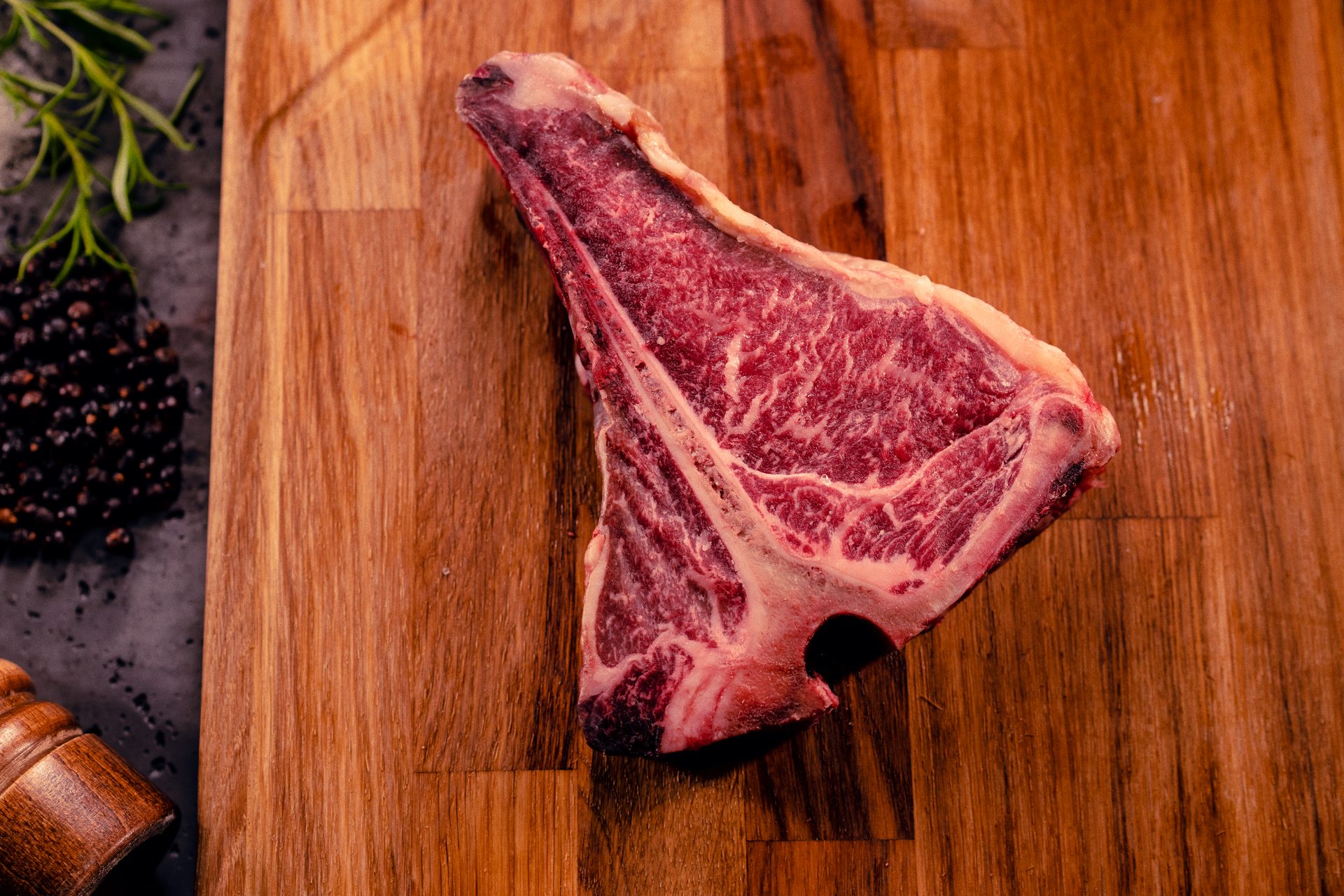 Sezonowany na sucho stek T-Bone to propozycja dla prawdziwych koneserów mięsa wołowego. Łączący w sobie smak i strukturę dwóch rodzajów mięs może wydawać się trudny do przyrządzenia. Nic bardziej mylnego. Ze steku T-Bone z powodzeniem możemy sporządzić wiele dań, które nie zajmą nam dużo czasu a jednocześnie rozpieszczą podniebienie. Jednym z nich jest T-Bone z masłem rozmarynowym.